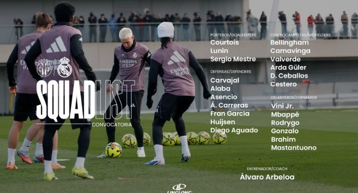 1月23日讯 本轮西甲皇马将在客场迎战比利亚雷亚尔,球队官方也公布了本场大名单,迪亚斯、罗德里戈回归,琼阿梅尼累积黄牌停赛。具体如下:门将:库尔图瓦、卢宁、梅斯特雷后卫:卡瓦哈尔、阿拉巴、劳尔·阿森西奥、卡雷拉斯、弗兰·加西亚、赫伊森、阿瓜多中场:贝林厄姆、卡马文加、巴尔韦德、居莱尔、塞巴略斯、塞斯特罗前锋:维尼修斯、姆巴佩、罗德里戈、贡萨洛·加西亚、迪亚斯...